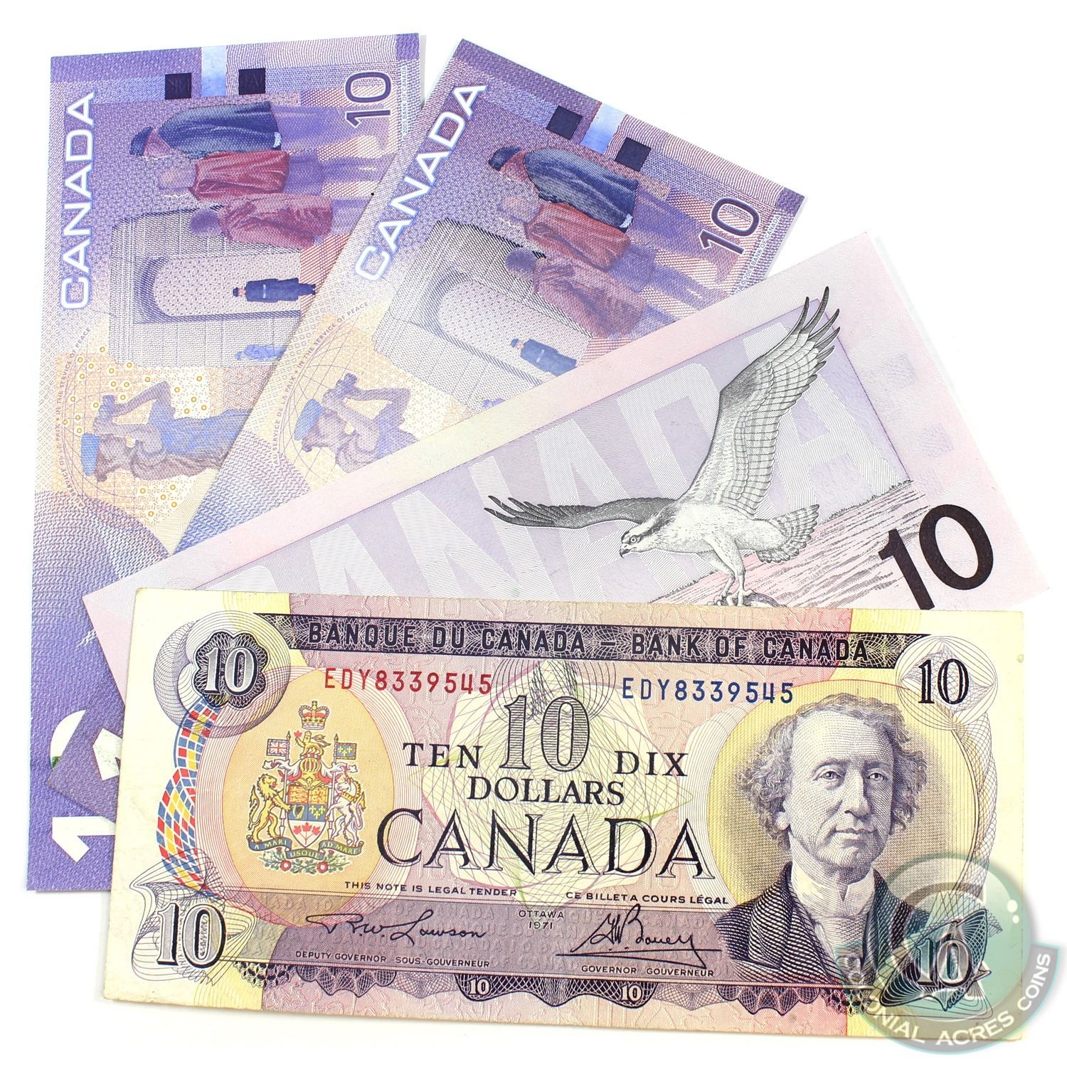 Lot of 4x Bank of Canada $10 Notes. You will receive 1971, 1989, 2001 & 2005. 4pcs