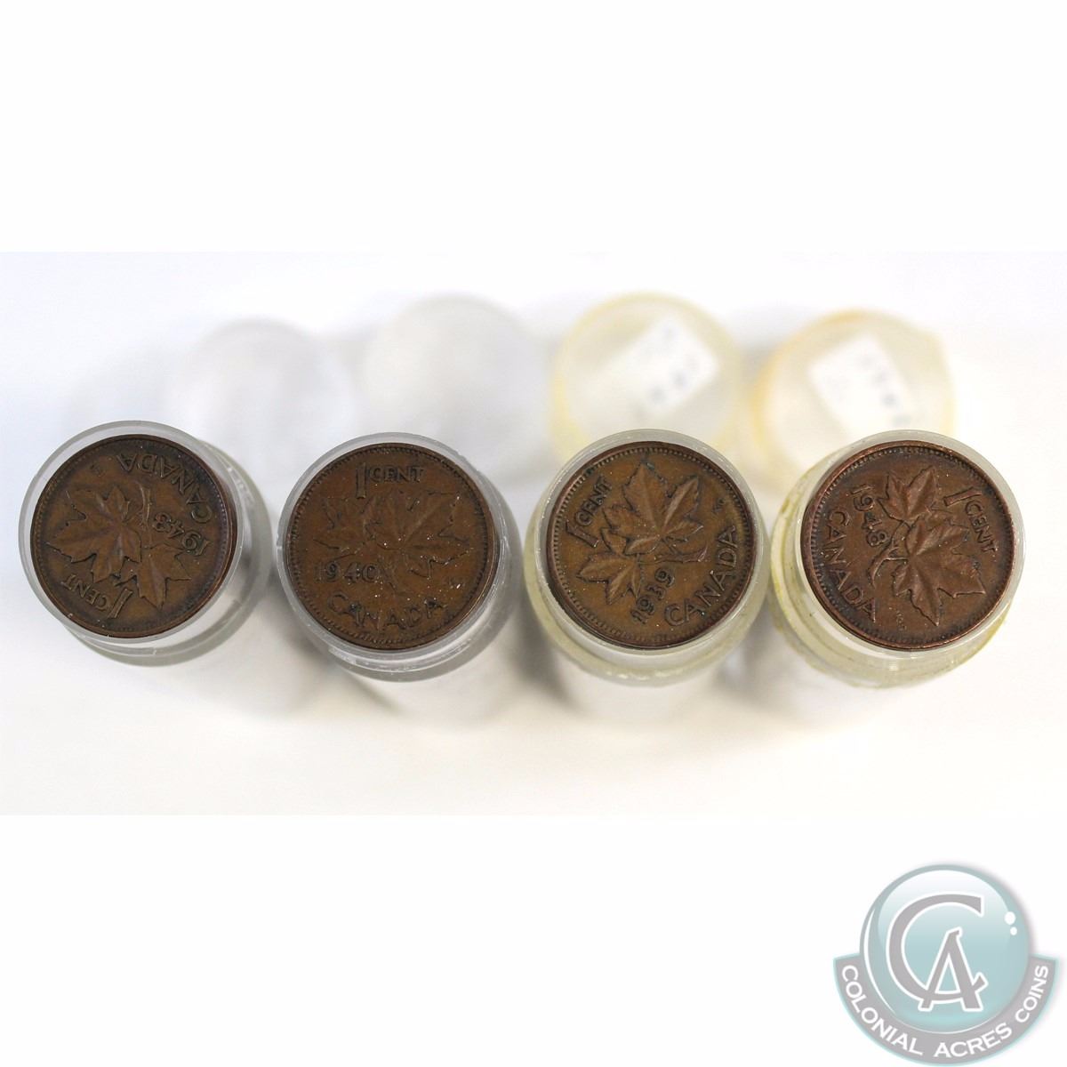 Lot of 4x Canada 1-cent Rolls of 40pcs Dated 1939, 1940, 1943 & 1948. 4pcs
