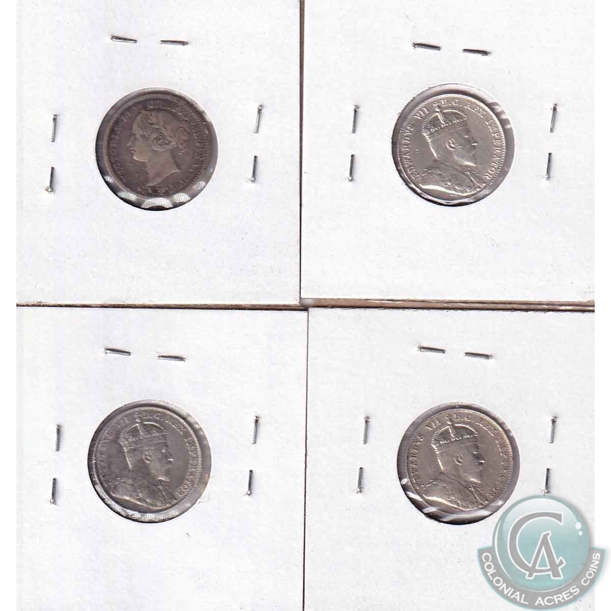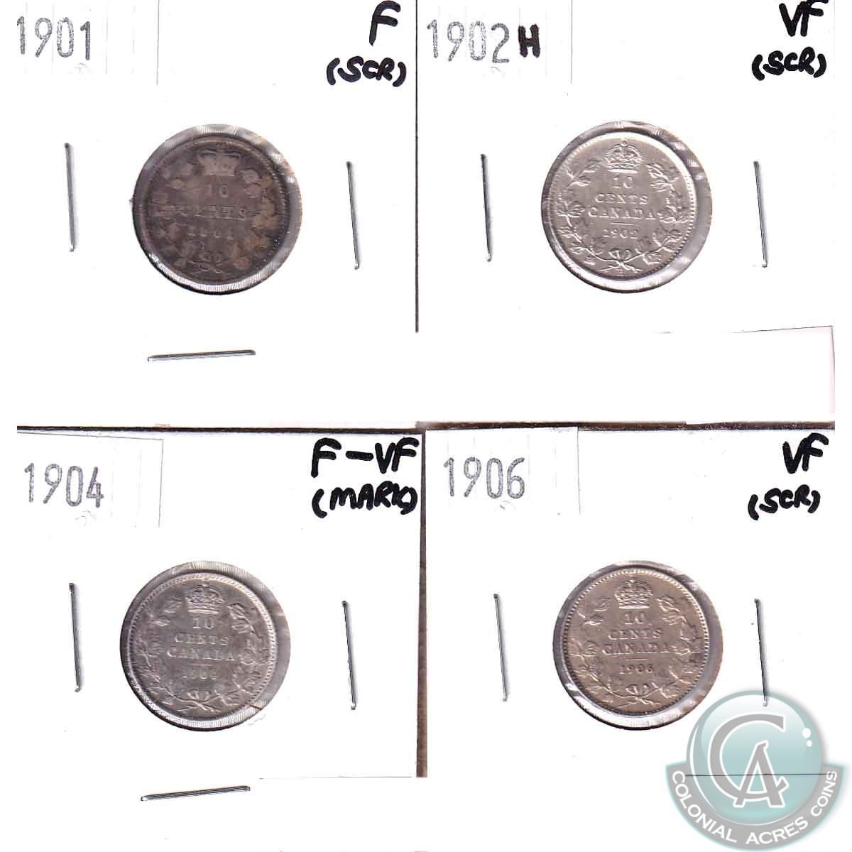 Lot of 4x Canada 10-cent Dated 1901, 1902H, 1904 & 1906 in Fine to VF (coins have various impairment
