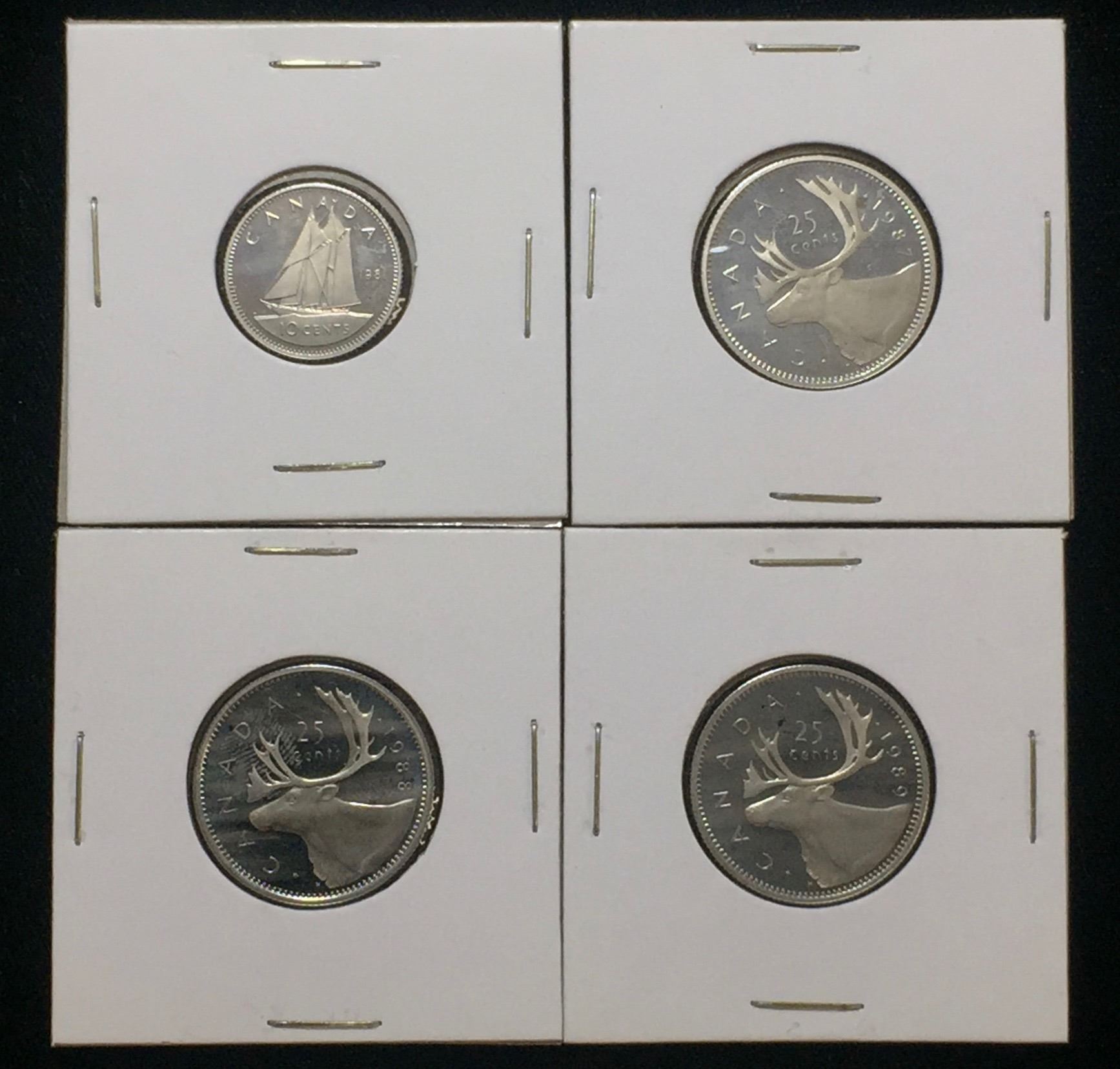 Lot 262; Royal Canadian Mint, Lot of 4x Canada 25-Cents & 10-Cents Proof Coins, 25c Dates Include 1987, 1988, 1989, 10c Date Includes 1981, Proof Finish, Queen Elizabeth II Effigy, Condition as Pictured