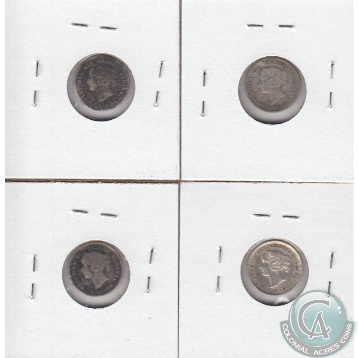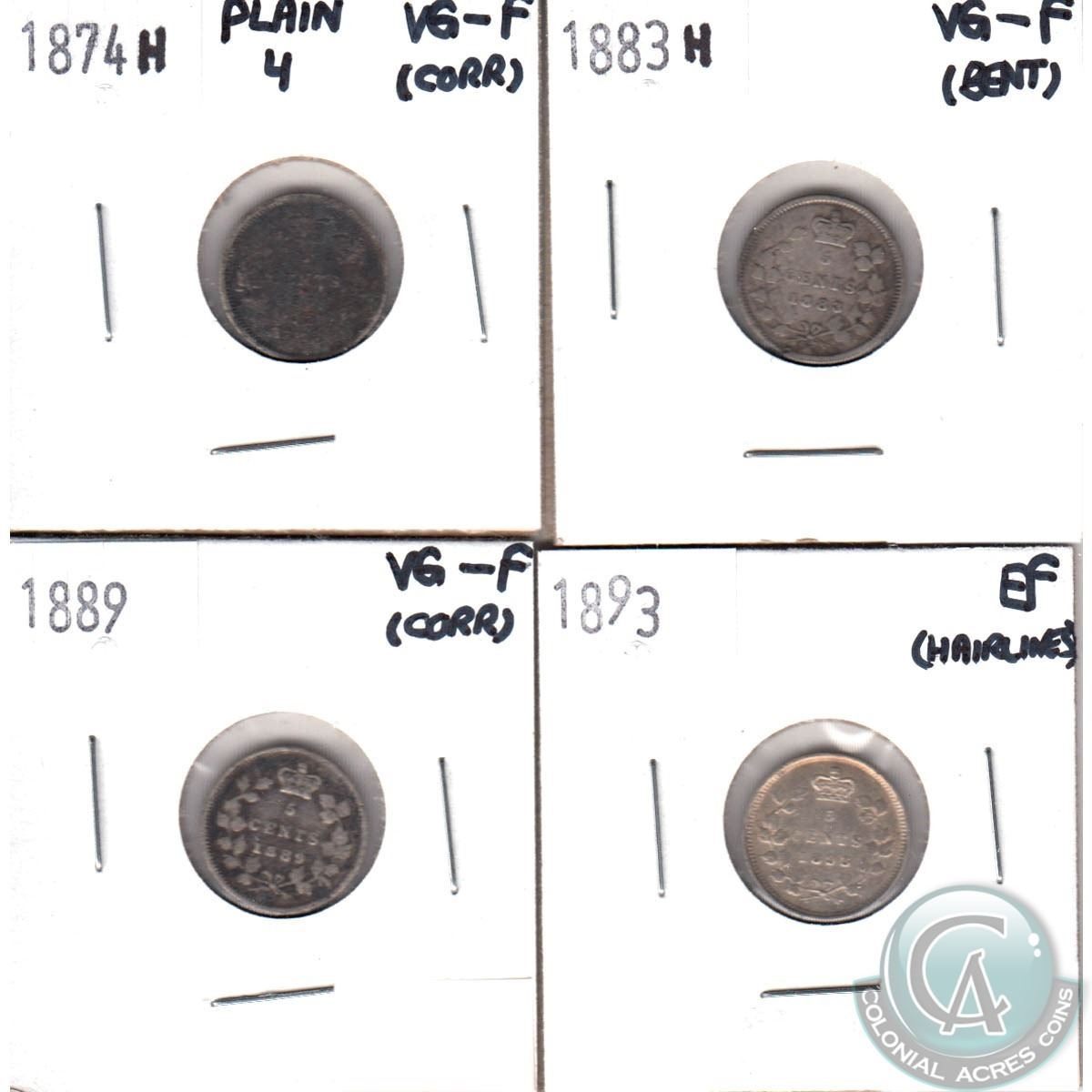 Lot of 4x Canada 5-cent Dated 1874H Plain 4, 1883H, 1889 & 1893 in VG-F or EF (coins have various im