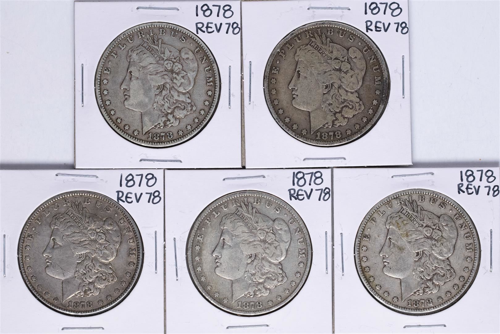One Lot of (5) 1878 Reverse of 78' $1 Morgan Silver Dollar Coins.