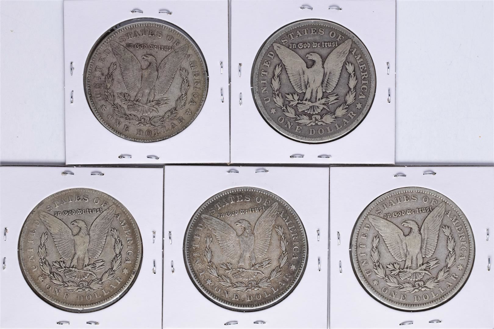 One Lot of (5) 1878 Reverse of 78' $1 Morgan Silver Dollar Coins.