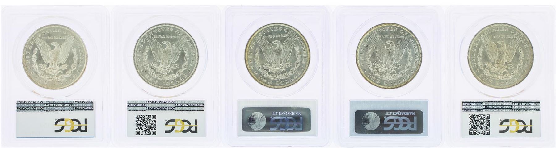 One Lot of (5) 1884-O $1 Morgan Silver Dollar Coins PCGS MS64. PCGS Graded.