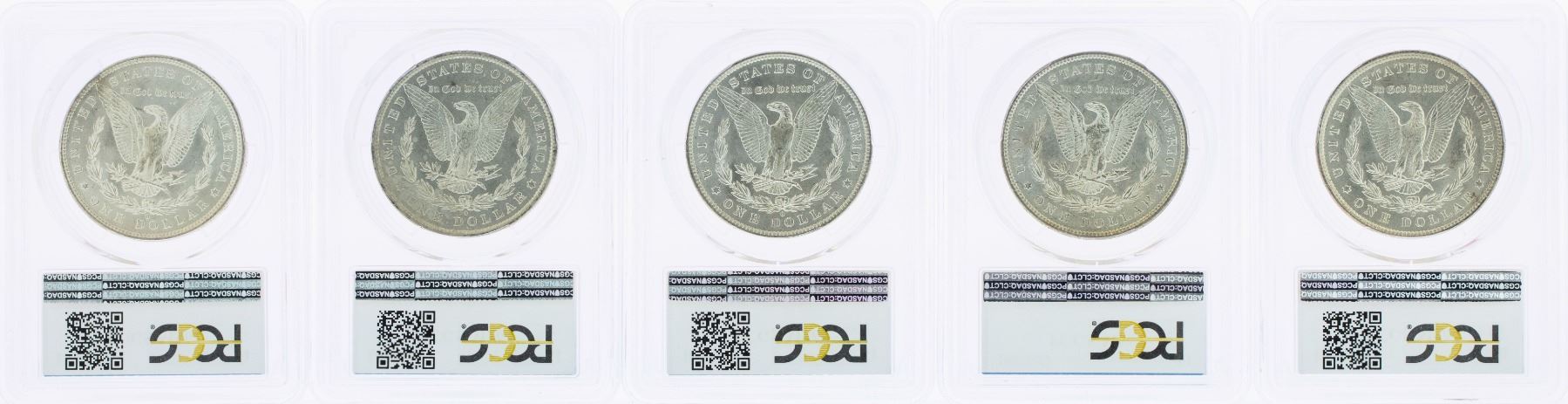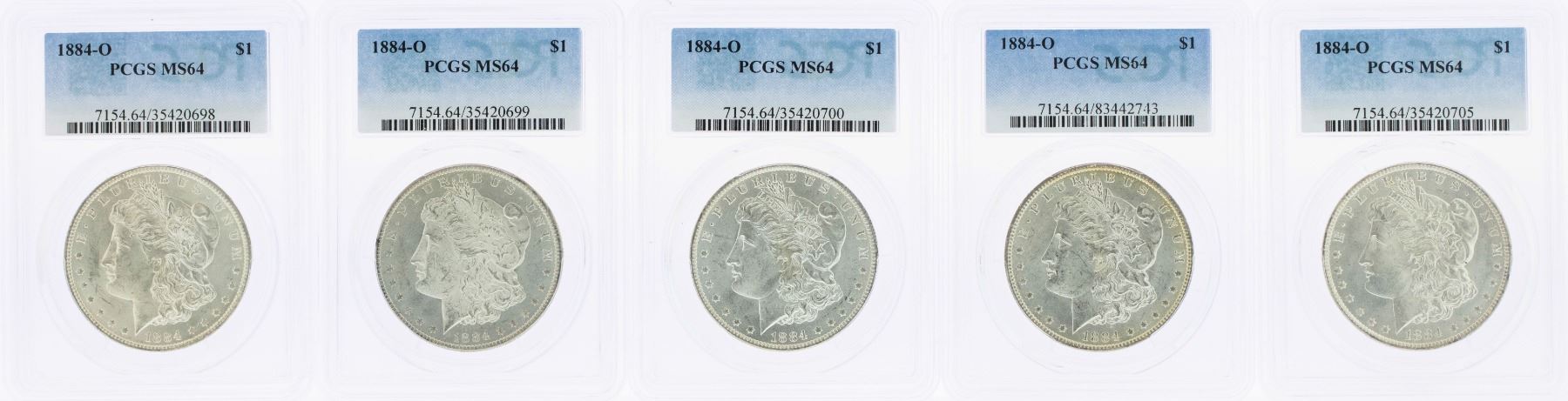 One Lot of (5) 1884-O $1 Morgan Silver Dollar Coins PCGS MS64.