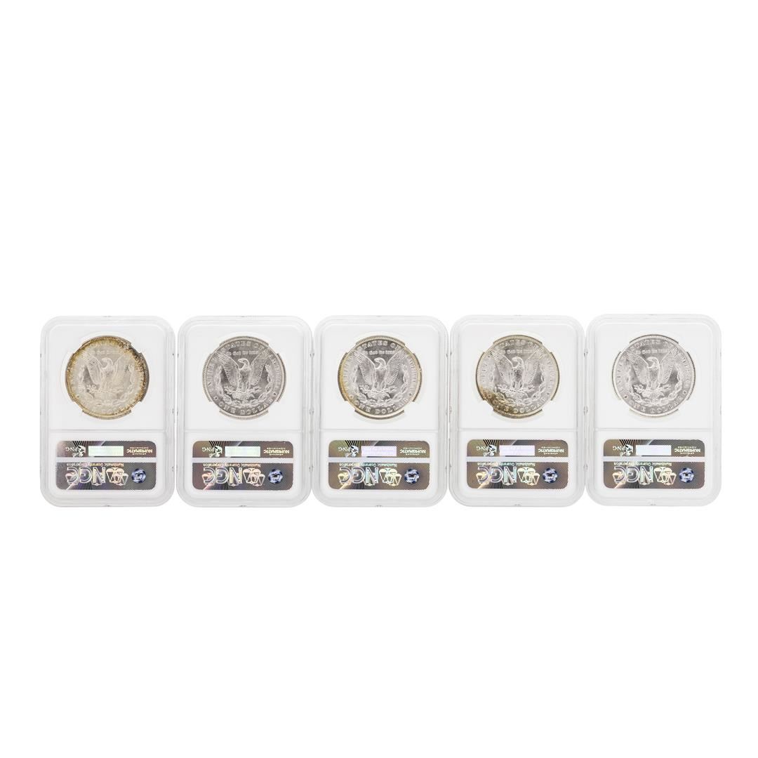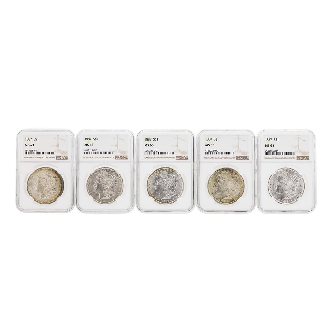 One Lot of (5) 1887 $1 Morgan Silver Dollar Coins NGC MS63. NGC Certified.