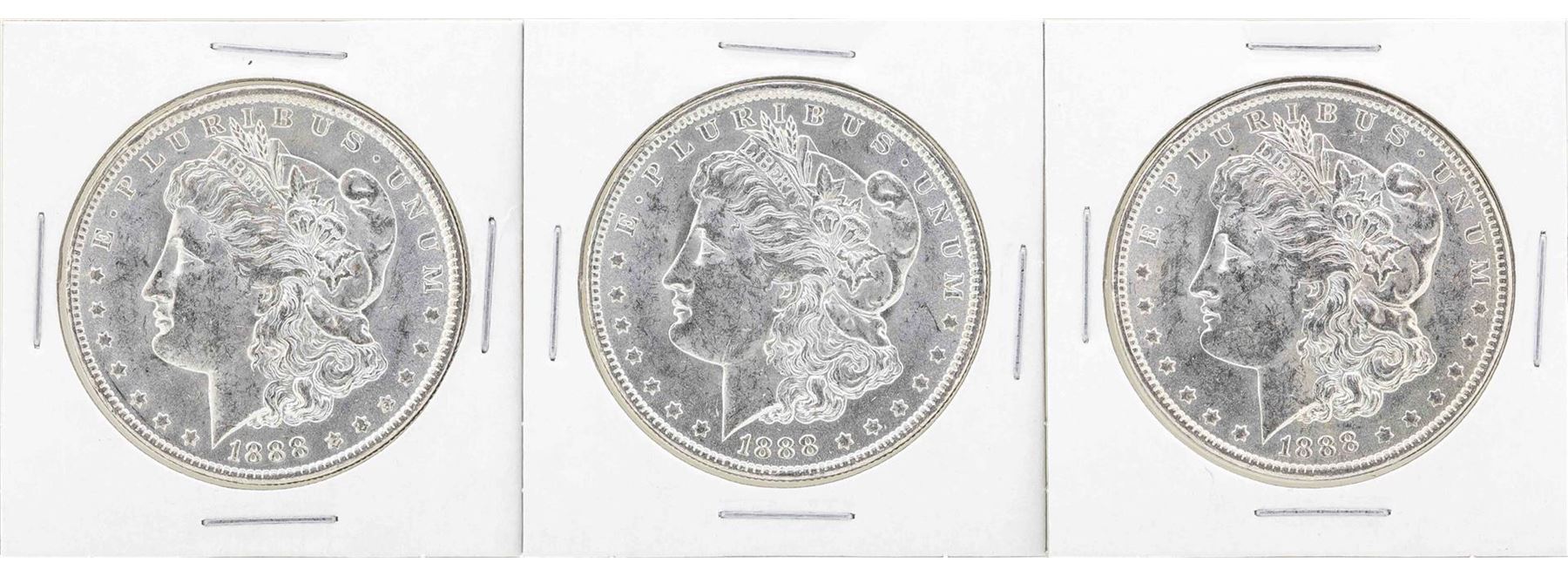 One Lot of (5) 1888-O $1 Morgan Silver Dollar Coins.