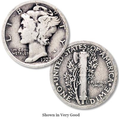 A lot of (5) 1920's Merucry dimes- Circulated Coins- VG grade-approx.