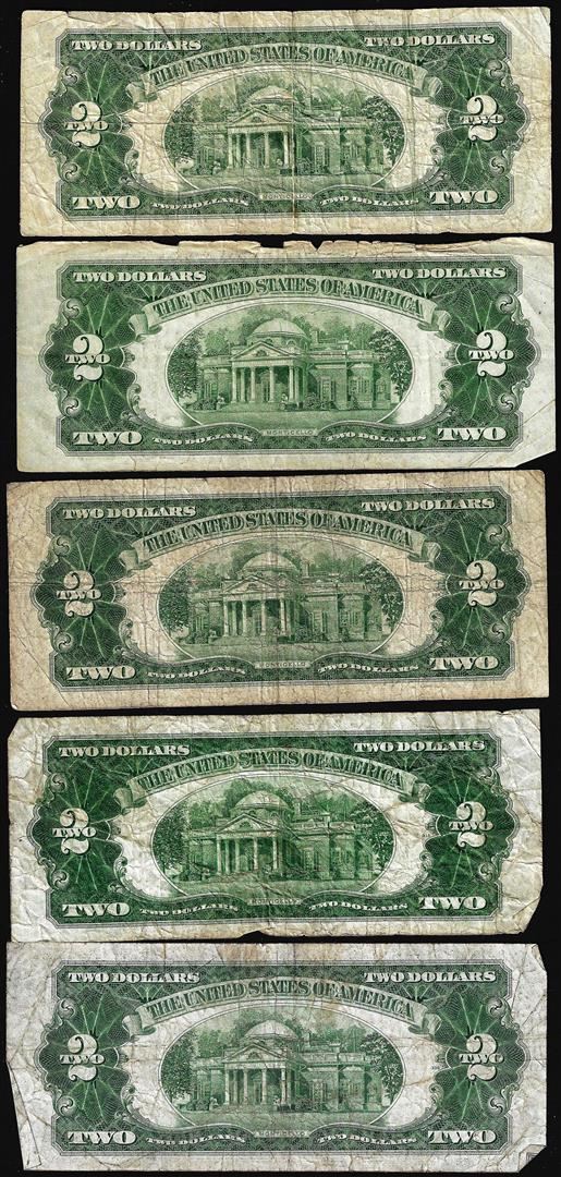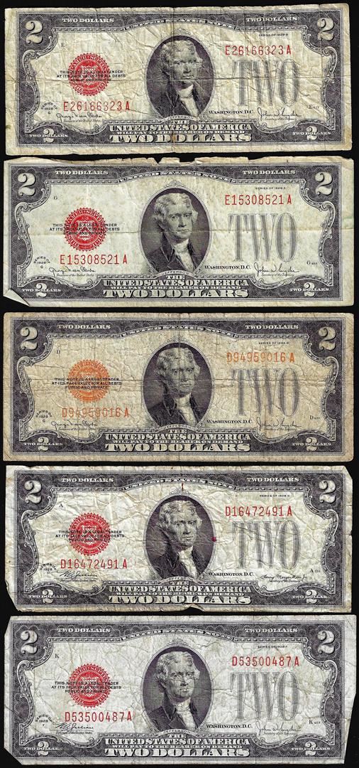 One Lot of (5) 1928D/1928G/1928F $2 Legal Tender Notes.
