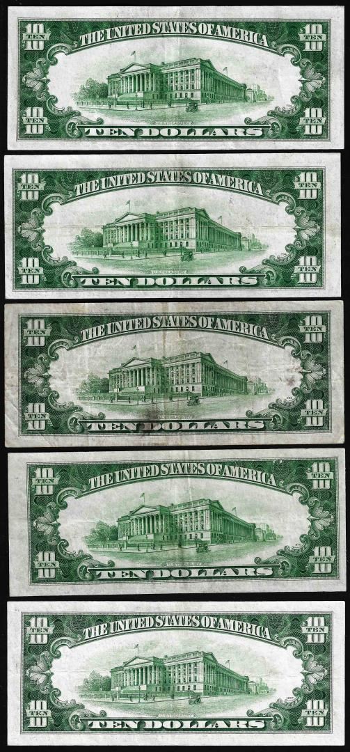 One Lot of (5) 1934 $10 Federal Reserve Notes.