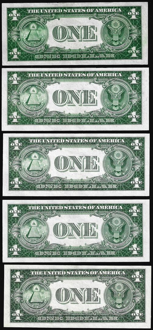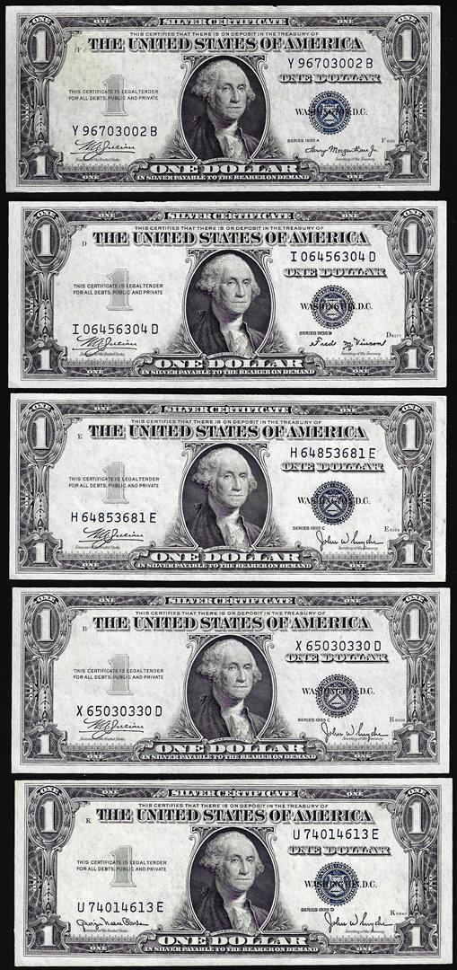 One Lot of (5) 1935A/B/C/D $1 Silver Certificate Notes.