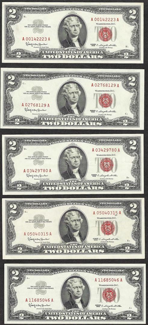 One Lot of (5) 1953/1963 $2 Legal Tender Notes.