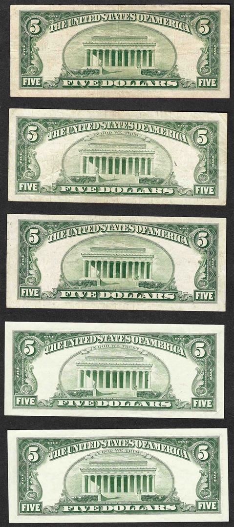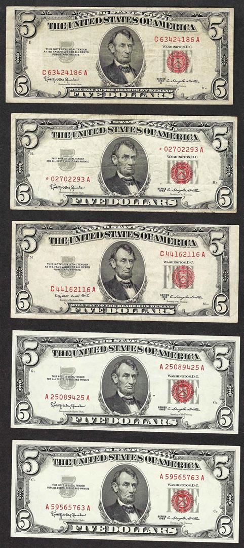 One Lot of (5) 1953/1963 $5 Legal Tender Notes.