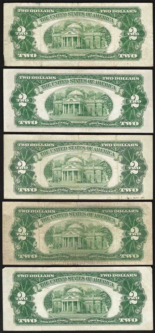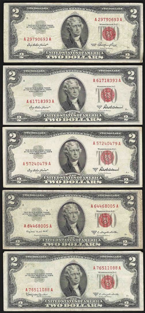 One Lot of (5) 1953 $2 Legal Tender Notes.