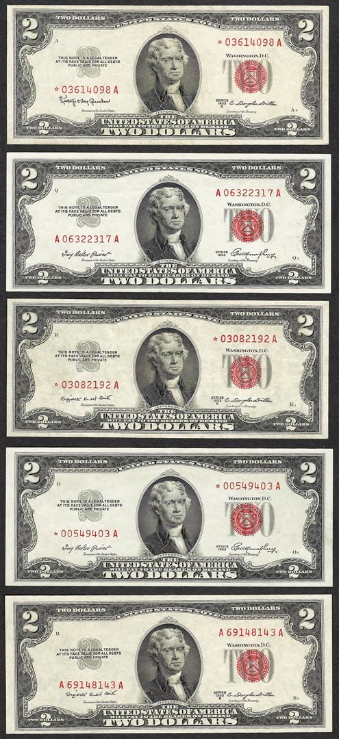 One Lot of (5) 1953 $2 Legal Tender Notes.