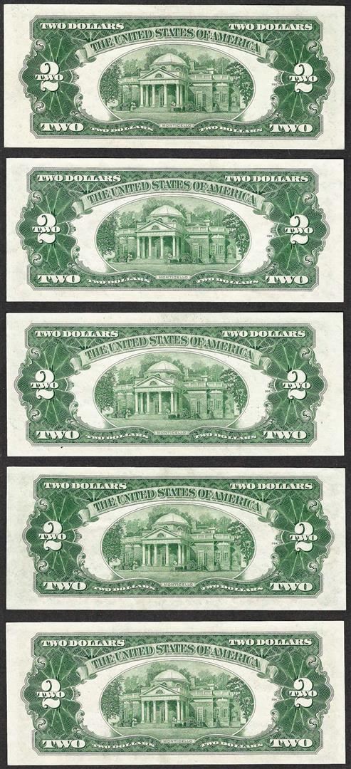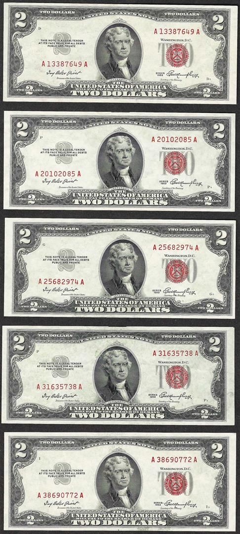 One Lot of (5) 1953 $2 Legal Tender Notes.