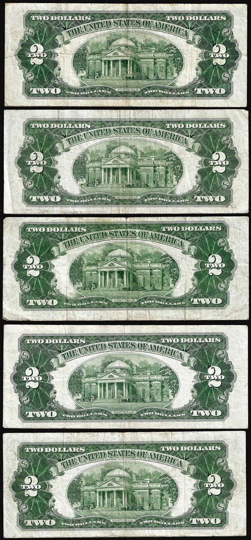 One Lot of (5) 1953 $2 Legal Tender Star Notes.