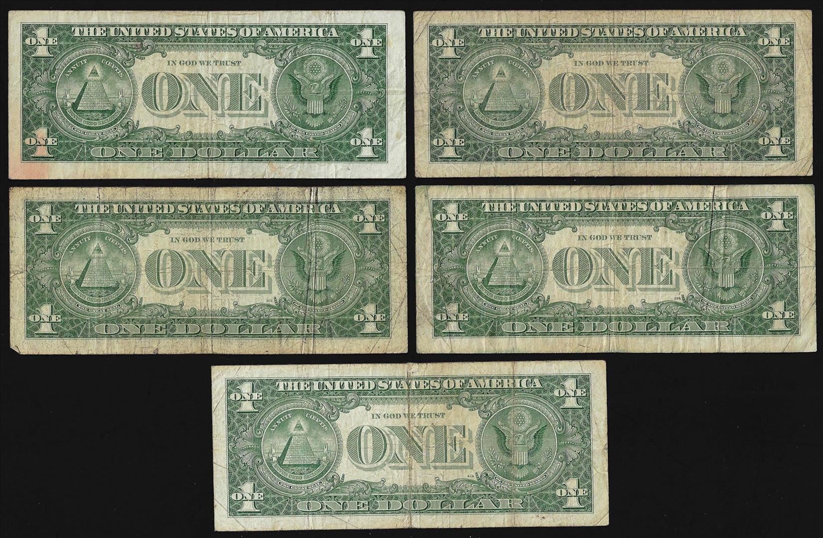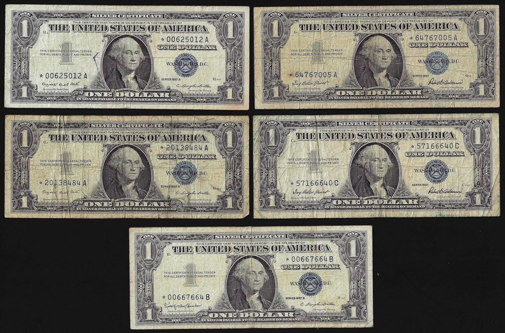 One Lot of (5) 1957 $1 Silver Certificate STAR Notes.