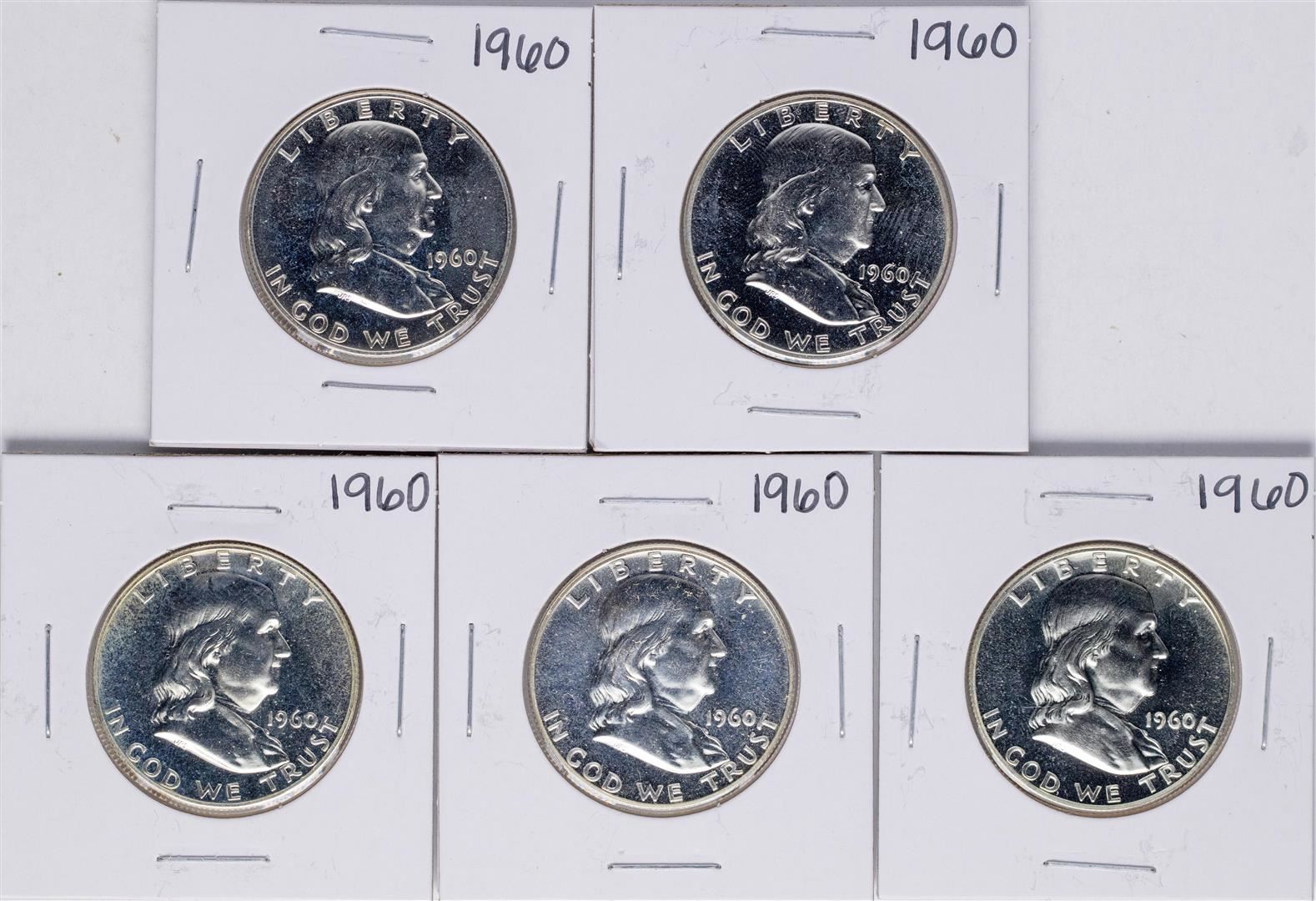 One Lot of (5) 1960 Proof Franklin Half Dollar Coins.