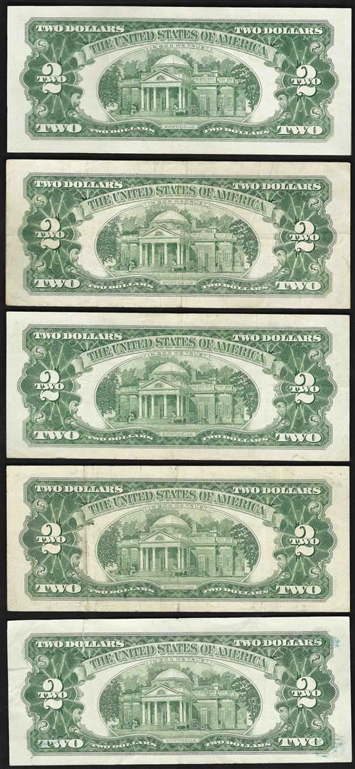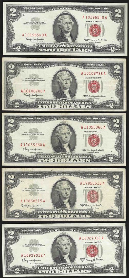 One Lot of (5) 1963 $2 Legal Tender Notes.