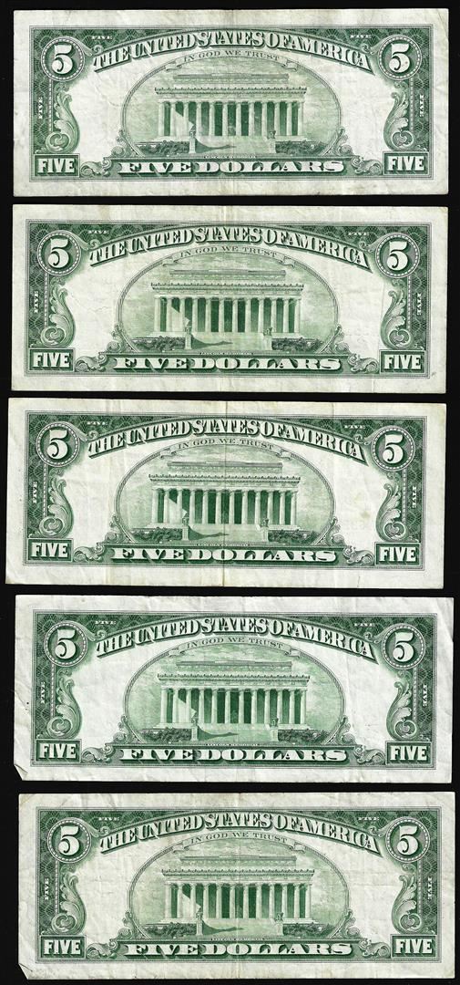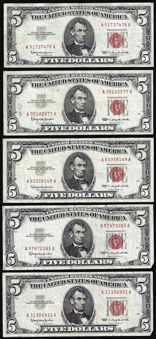 One Lot of (5) 1963 $5 Legal Tender Notes.