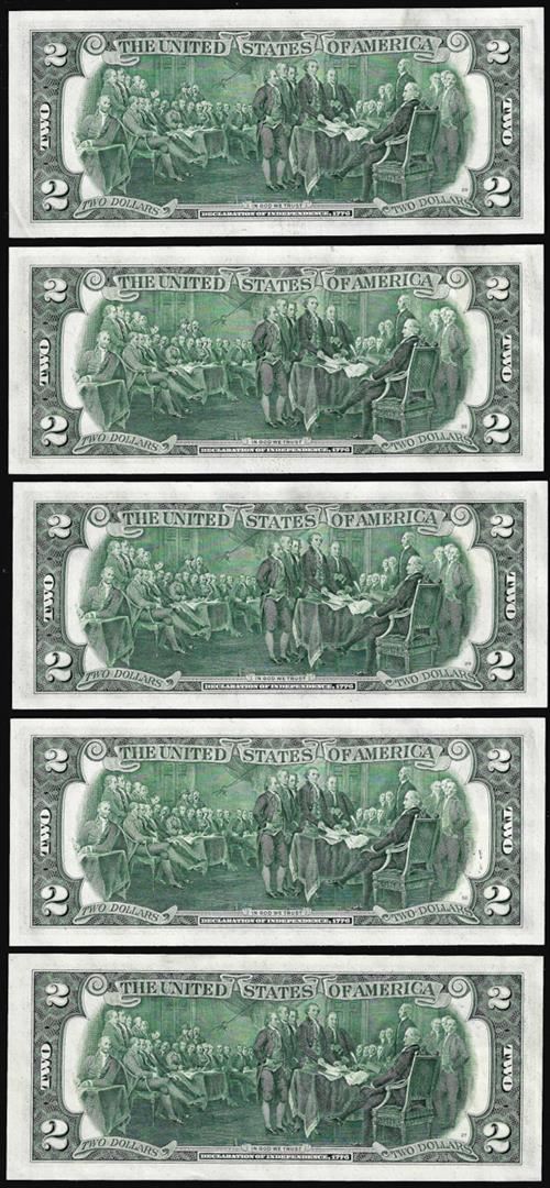 Lot of (5) 1976 $2 Federal Reserve Notes Dallas First Day Stamps