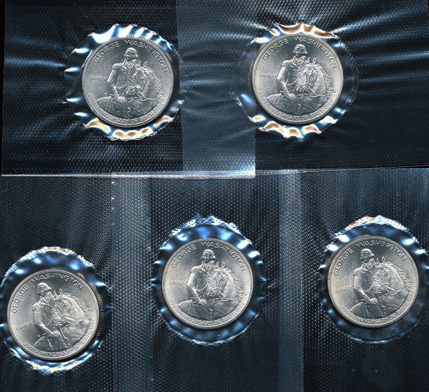 These 1982 George Washington Silver Half-Dollars were minted in honor of the 250th anniversary of Washington's birth. Containing .3617 oz actual Silver weight, these coins are popular for their collectibility and Silver value alike. These are still sealed direct from the Mint.