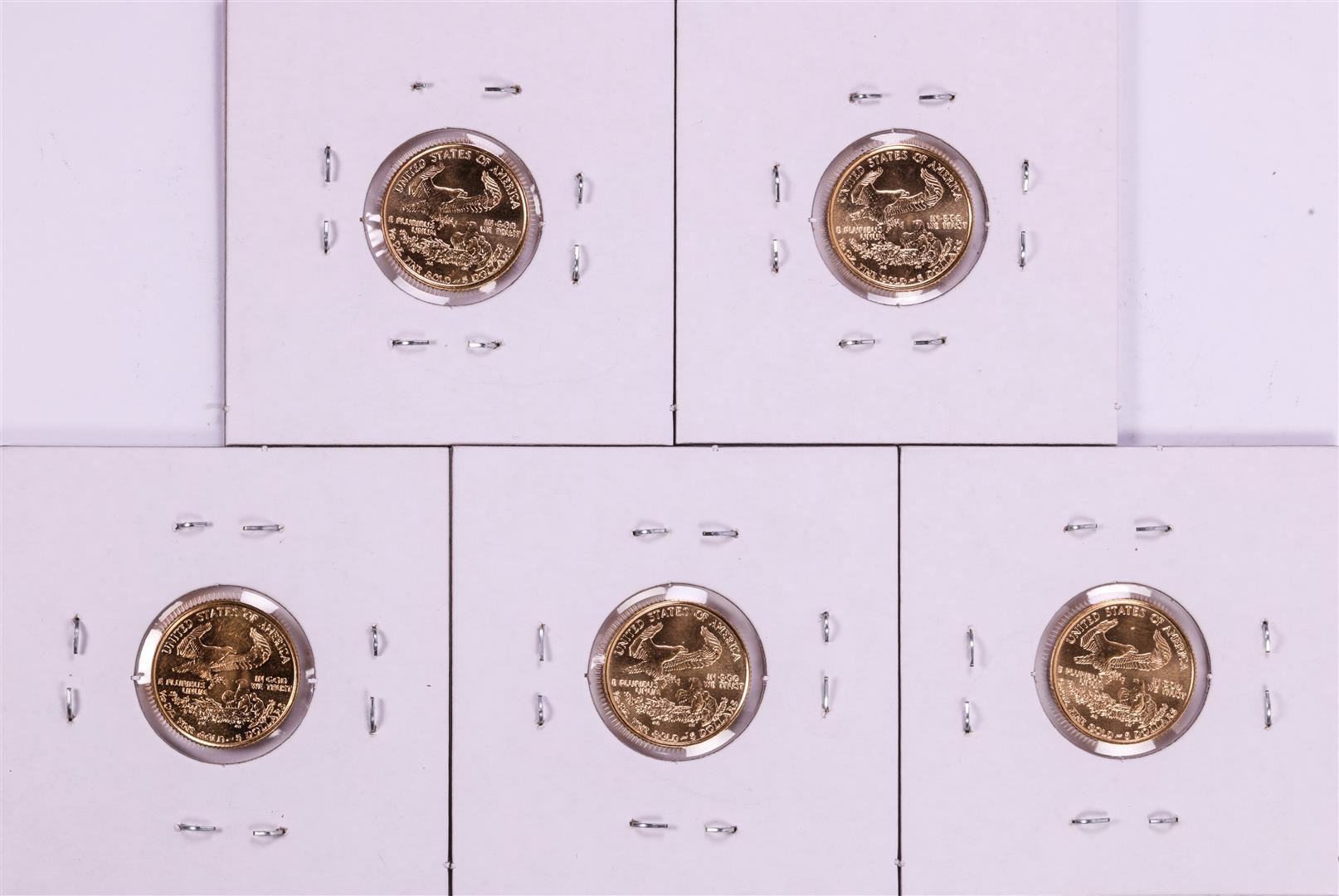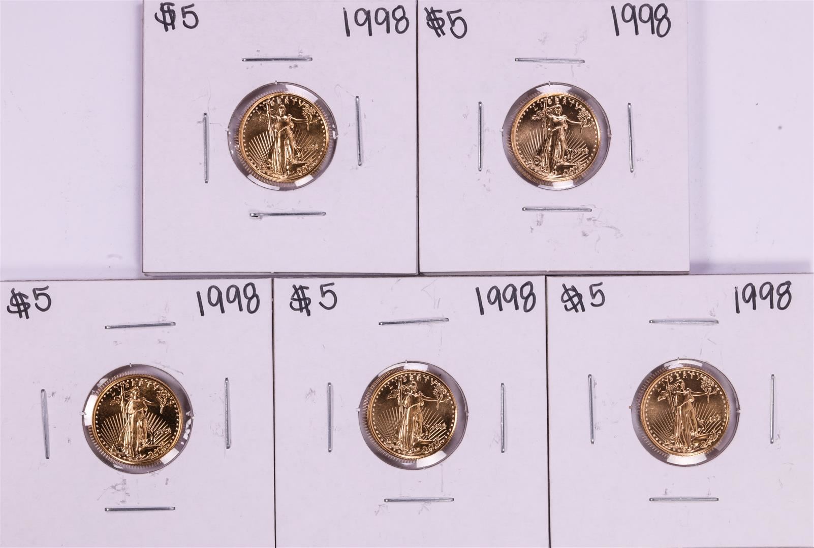 One Lot of (5) 1998 $5 American Gold Eagle Coins.