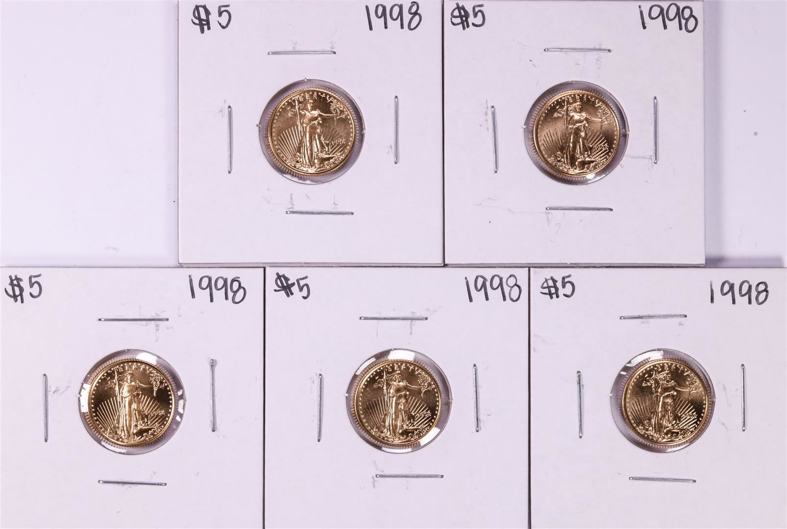 One Lot of (5) 1998 $5 American Gold Eagle Coins.
