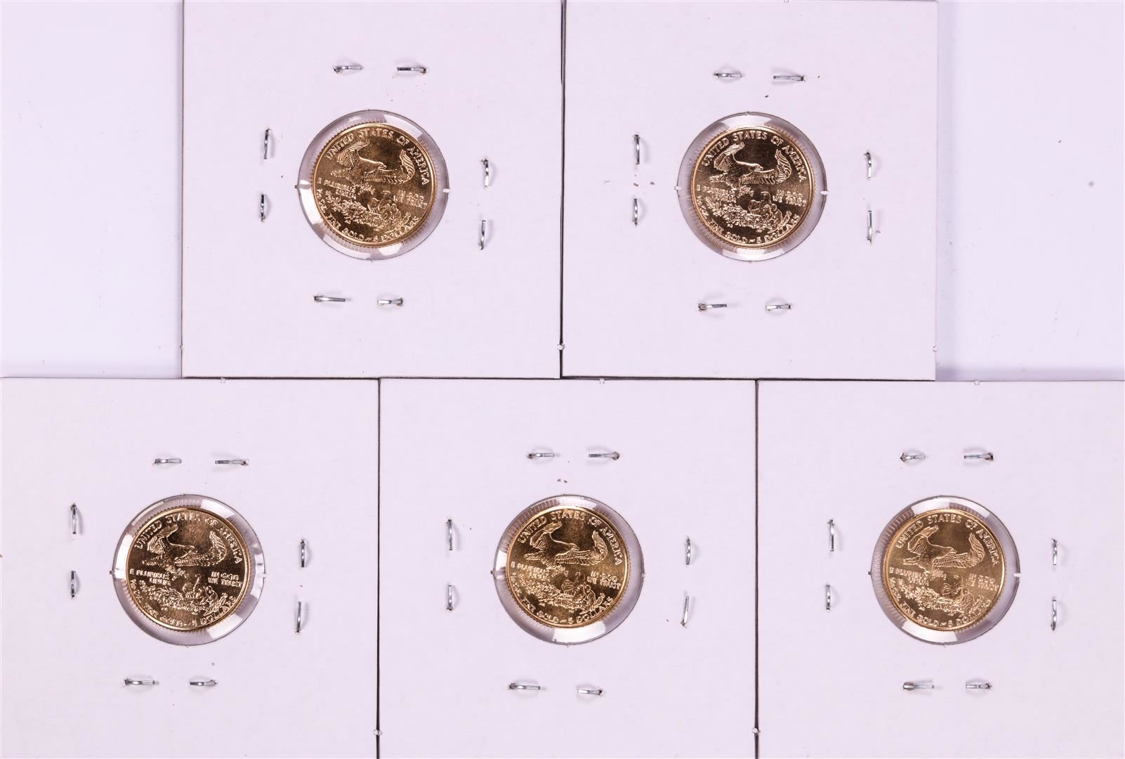 One Lot of (5) 1998 $5 American Gold Eagle Coins.