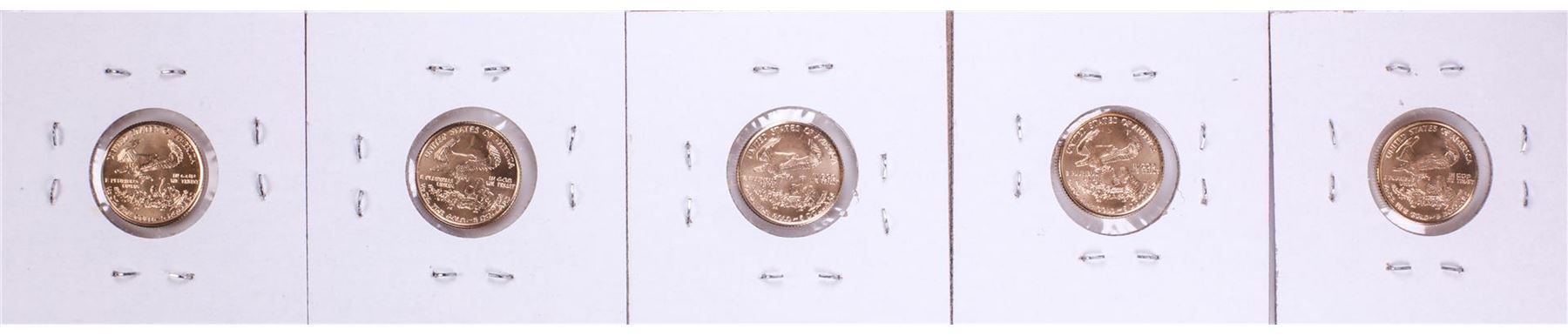 One Lot of (5) 1999 $5 American Gold Eagle Coins.