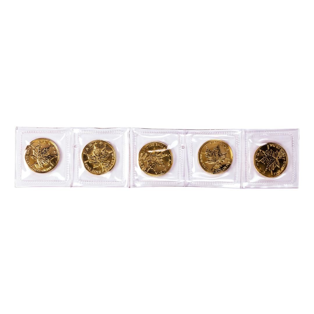 One Lot of (5) 1999 Canada $5 Maple Leaf Gold Coins.