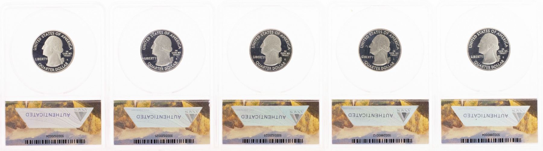Lot of (5) 2011-S Proof Silver America Beautiful Quarter Coins ANACS PR70 DCAM