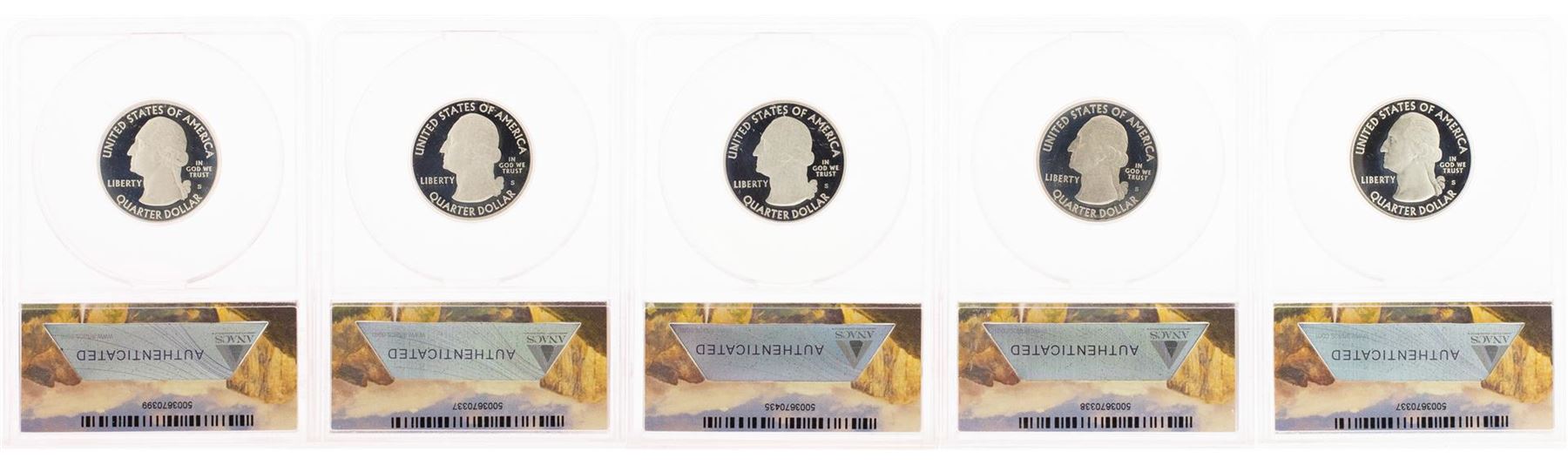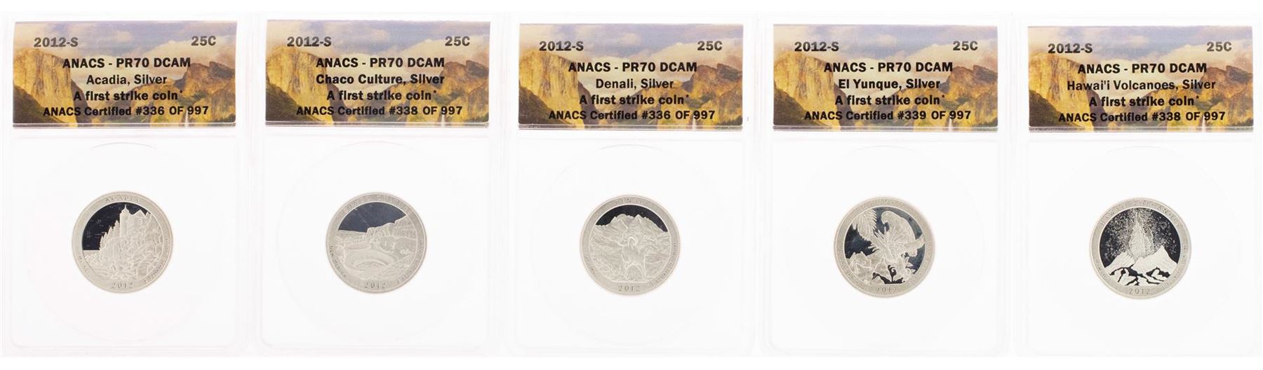 Lot of (5) 2012-S Proof Silver America Beautiful Quarter Coins ANACS PR70 DCAM
