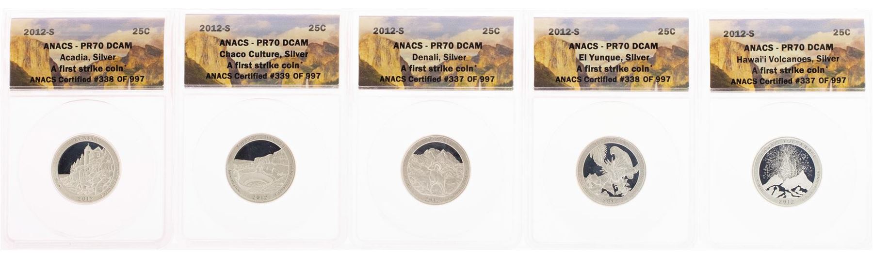 Lot of (5) 2012-S Proof Silver America Beautiful Quarter Coins ANACS PR70 DCAM