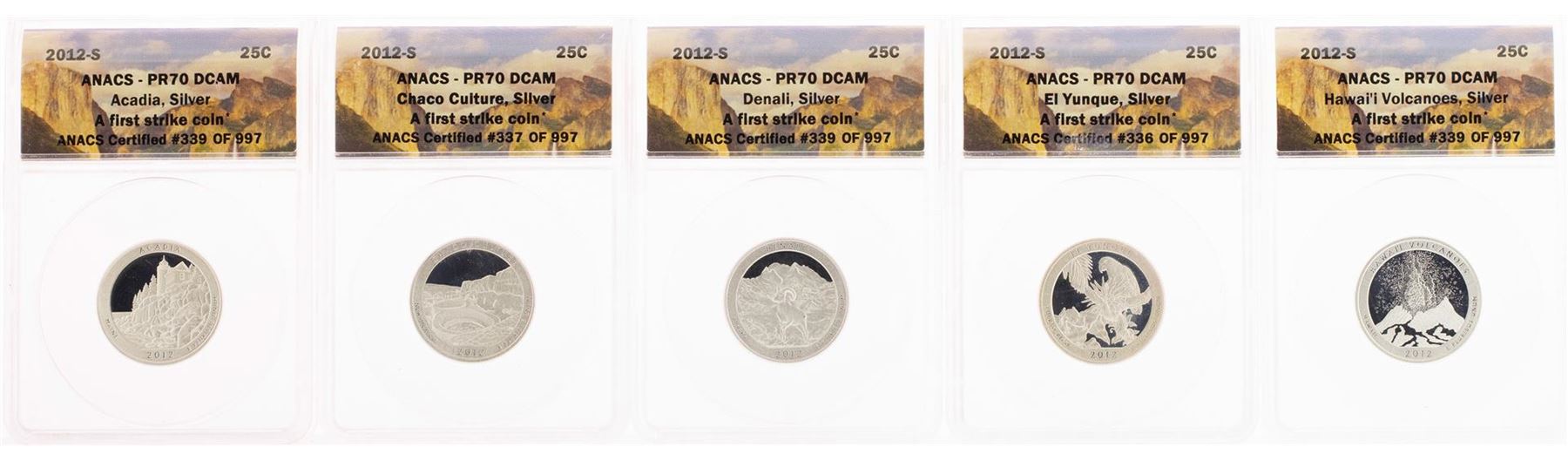 Lot of (5) 2012-S Proof Silver America Beautiful Quarter Coins ANACS PR70 DCAM