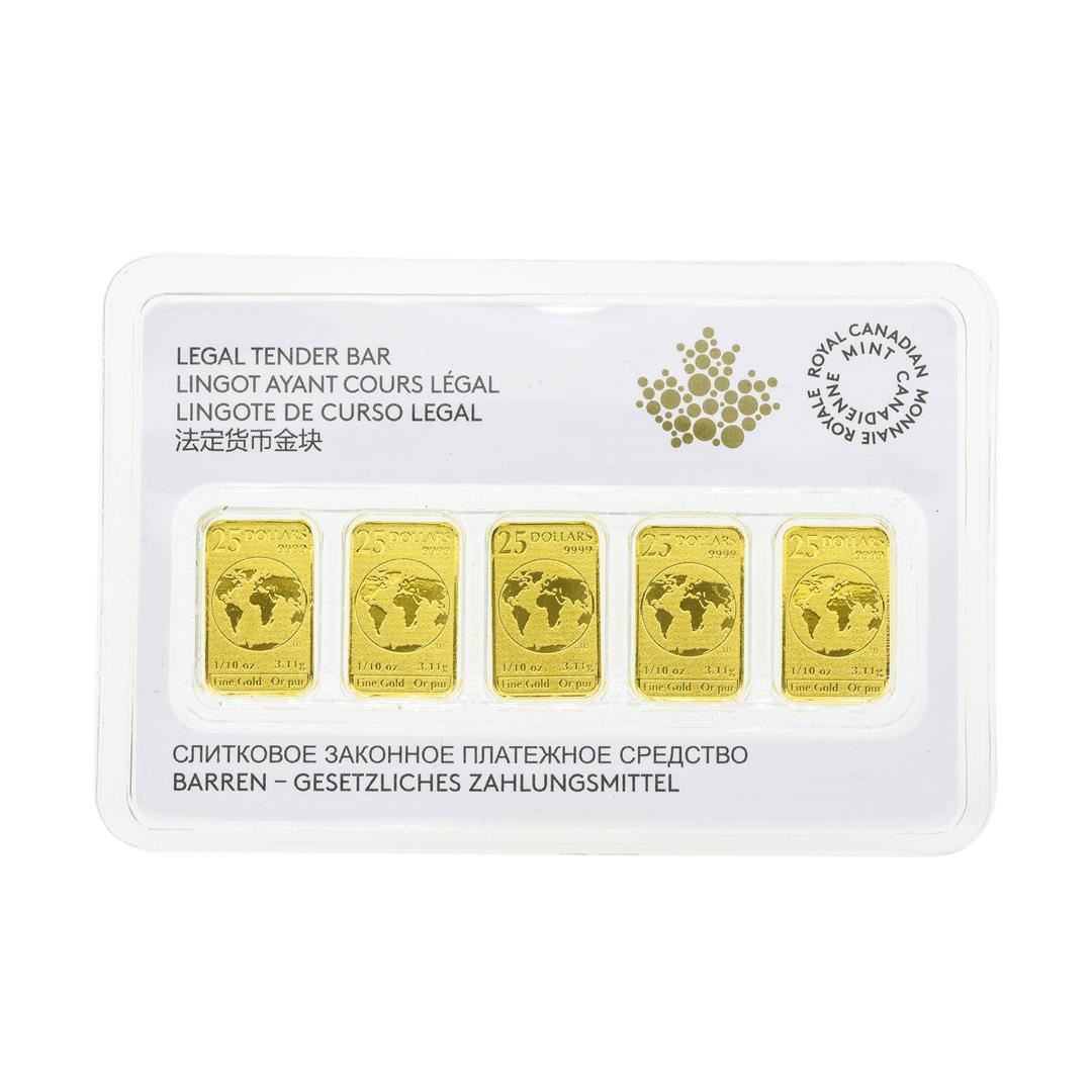 One Lot of (5) 2016 1/10oz Royal Canadian Mint .9999 Fine Gold Ingots.