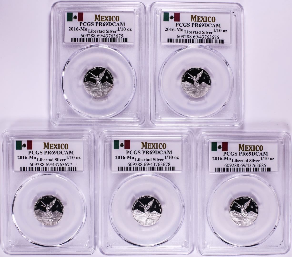 Lot of (5) 2016-Mo Mexico Proof 1/10 oz Silver Libertad Coin PCGS PR69DCAM