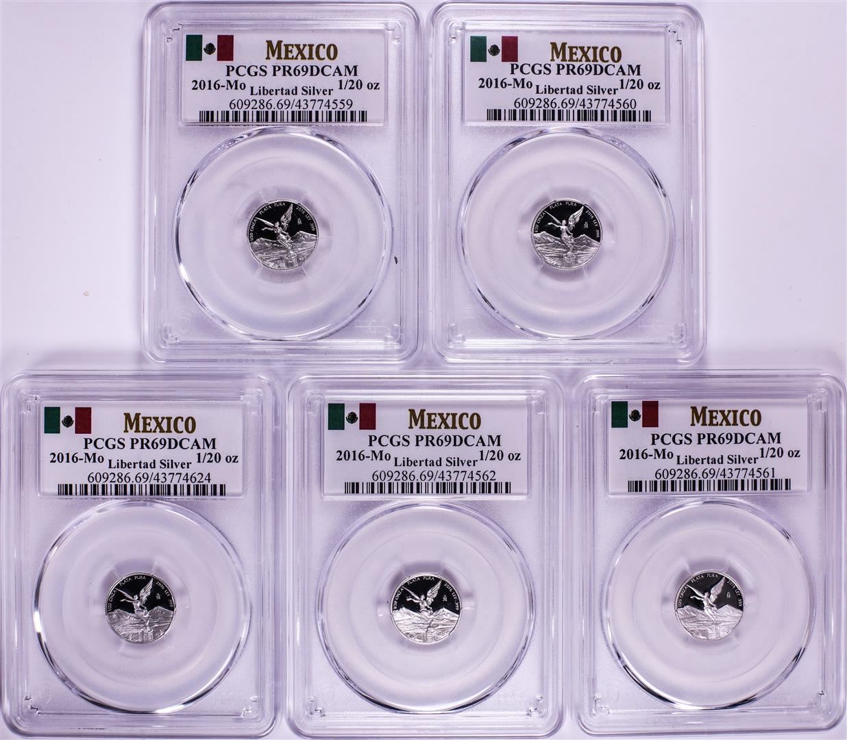 Lot of (5) 2016-Mo Mexico Proof 1/20 oz Silver Libertad Coin PCGS PR69DCAM