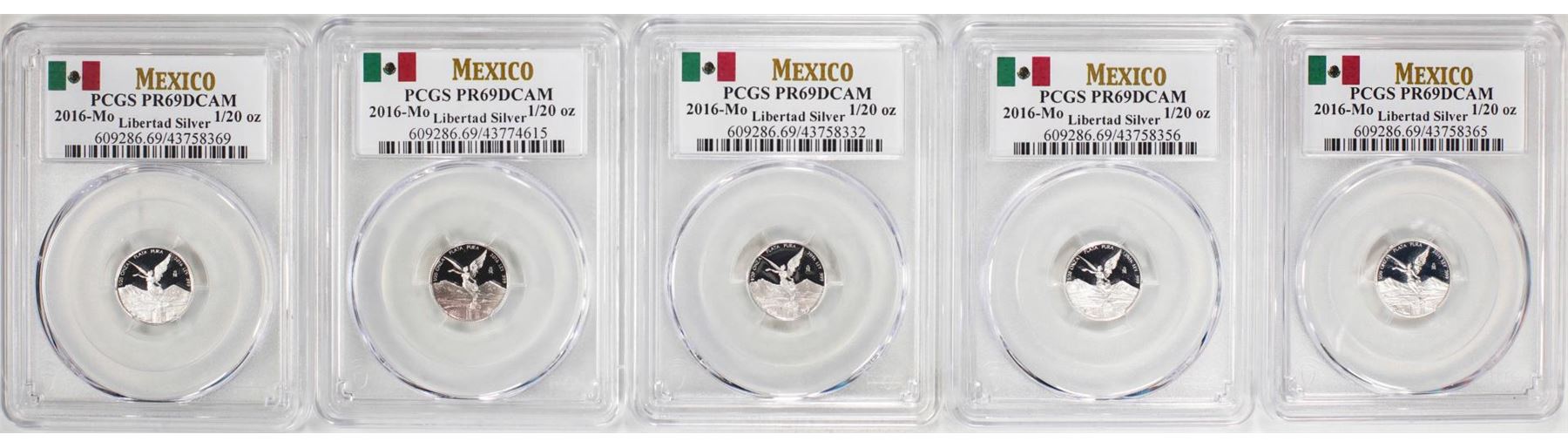 Lot of (5) 2016-Mo Mexico Proof 1/20 oz Silver Libertad Coins PCGS PR69DCAM