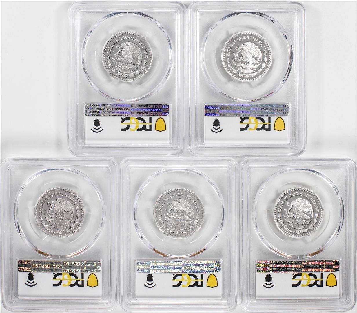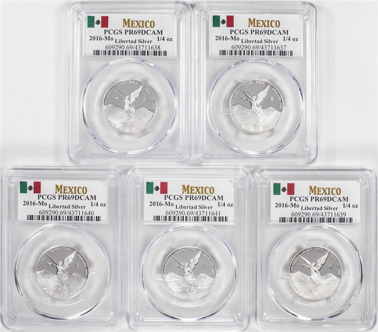 Lot of (5) 2016-Mo Mexico Proof 1/4 oz Silver Libertad Coins PCGS PR69DCAM