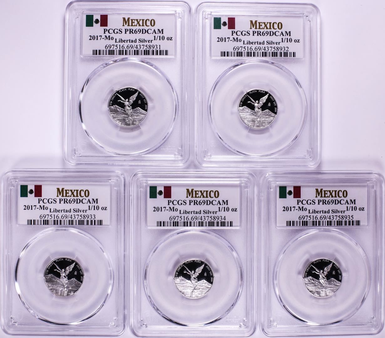 Lot of (5) 2017-Mo Mexico Proof 1/10 oz Silver Libertad Coin PCGS PR69DCAM