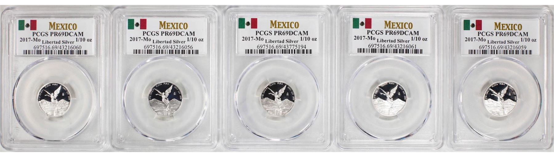 Lot of (5) 2017-Mo Mexico Proof 1/10 oz Silver Libertad Coins PCGS PR69DCAM