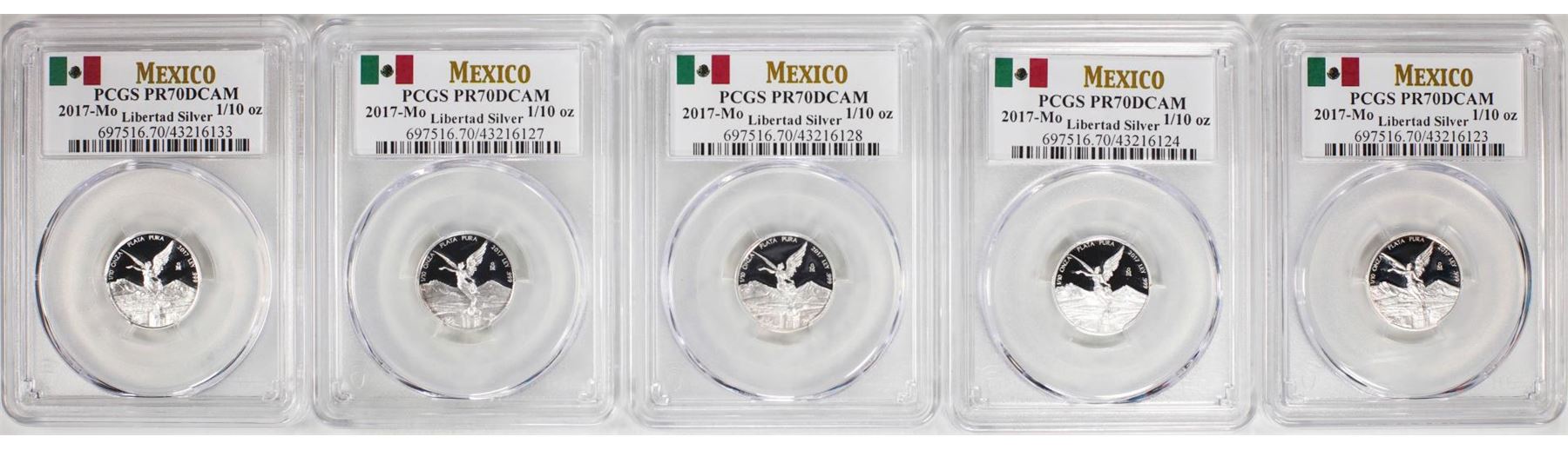Lot of (5) 2017-Mo Mexico Proof 1/10 oz Silver Libertad Coins PCGS PR70DCAM