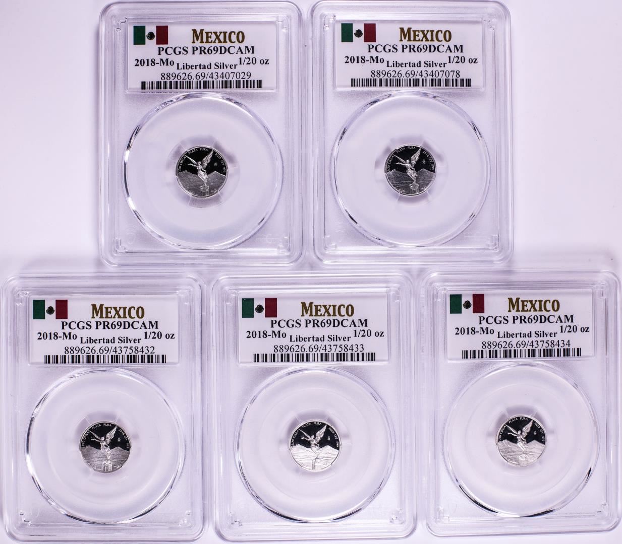 Lot of (5) 2018-Mo Mexico Proof 1/20 oz Silver Libertad Coin PCGS PR69DCAM