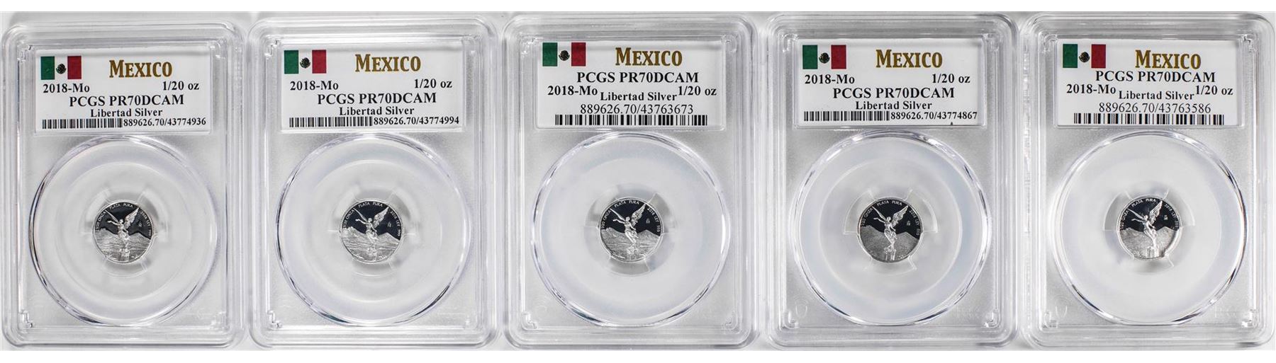 Lot of (5) 2018-Mo Mexico Proof 1/20 oz Silver Libertad Coins PCGS PR70DCAM