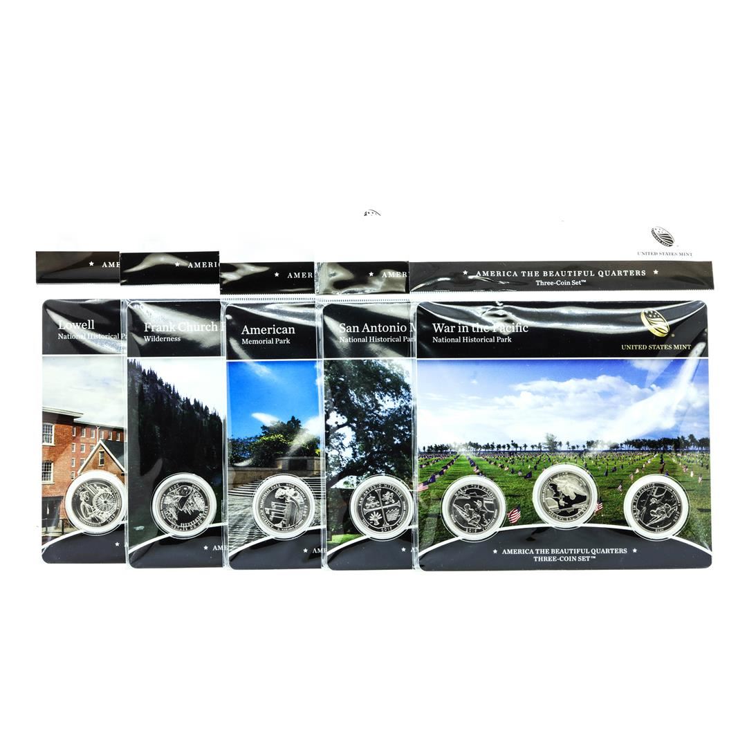 Lot of (5) 2019 America The Beautiful Three-Coin Quarter Sets