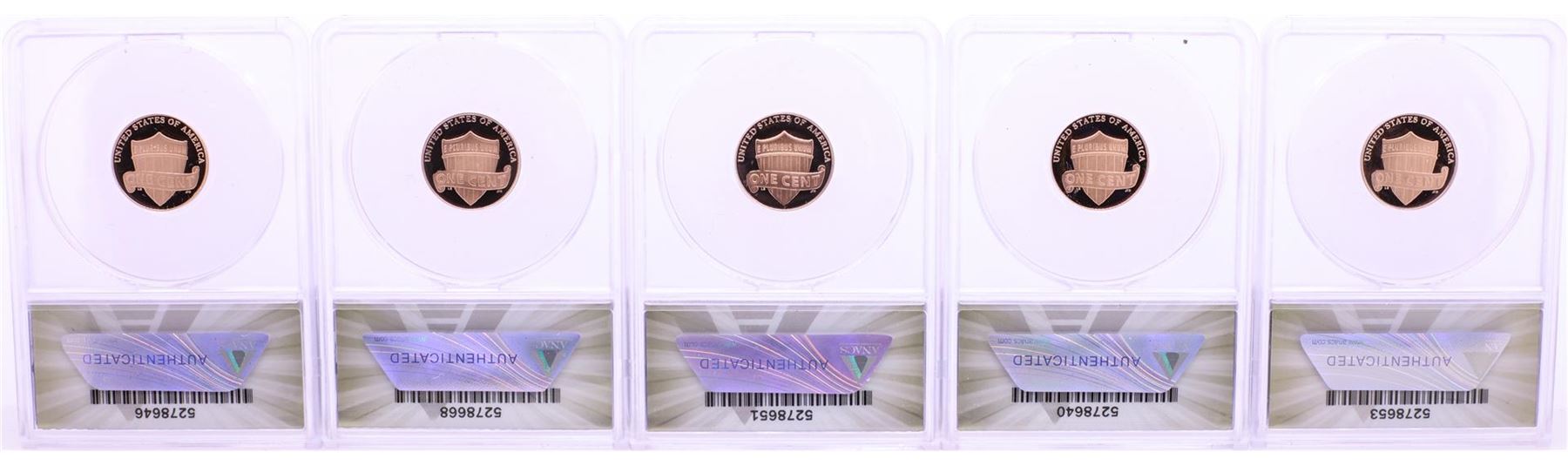 One Lot of (5) 2019-W Proof Lincoln Cent Coins ANACS PF69 DCAM. ANACS Certified.