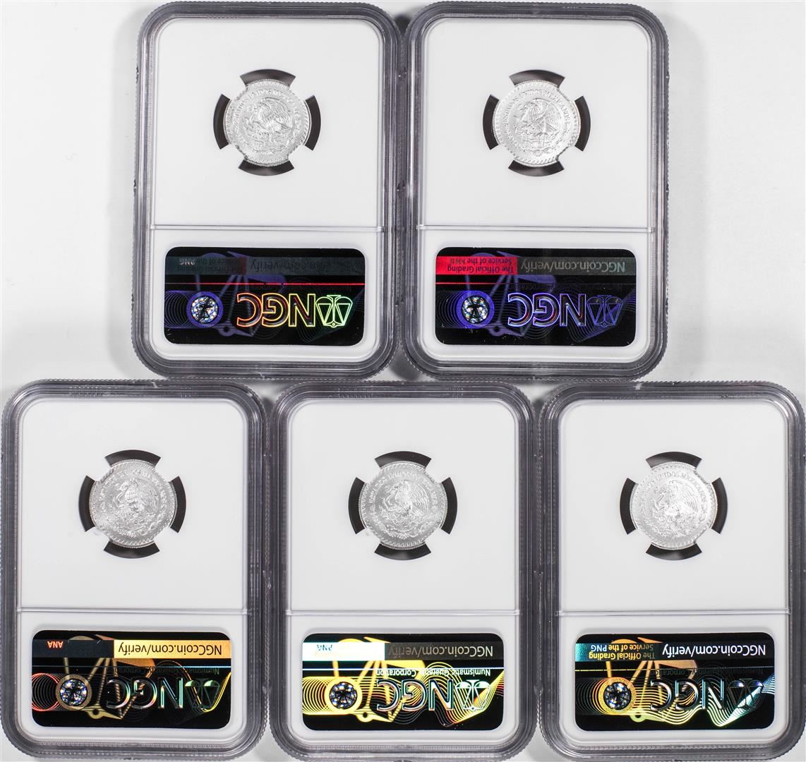 Lot of (5) 2021-Mo Mexico 1/10 oz Silver Libertad Coins NGC MS69