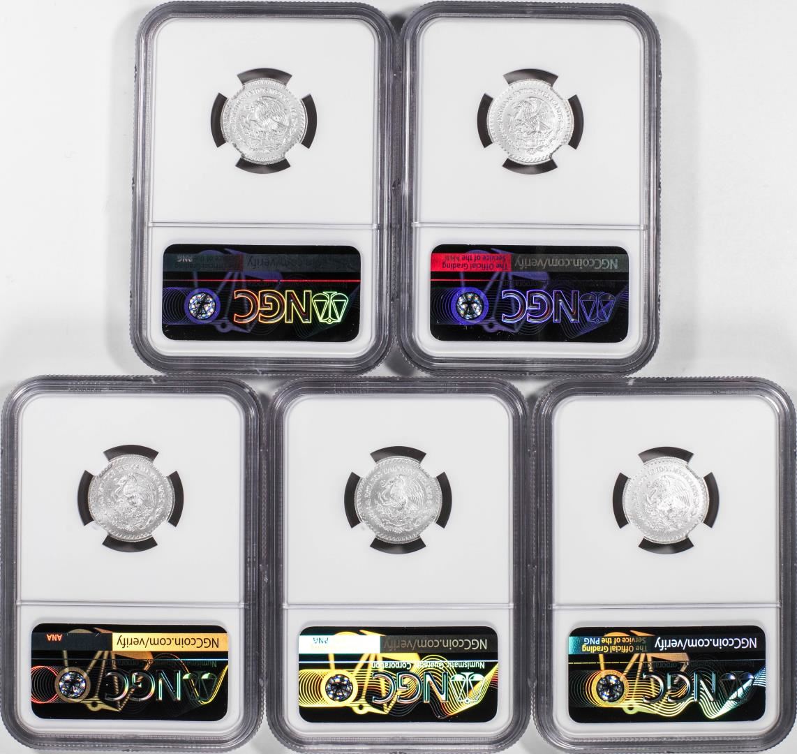 Lot of (5) 2021-Mo Mexico 1/10 oz Silver Libertad Coins NGC MS69